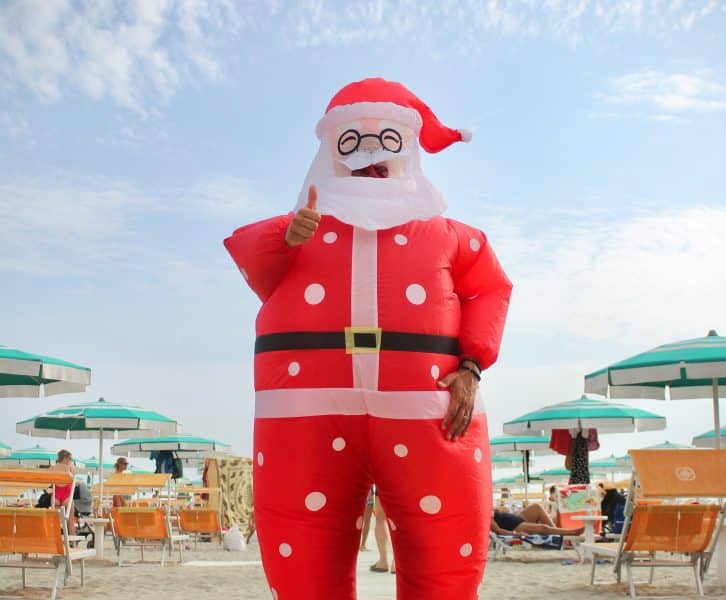 Inflatable elves are waving from store fronts