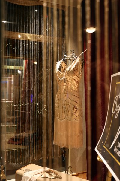 The 1920s were the start of a new movement for women’s fashion when the bra became popularized, the first official bra being made in 1910 by Mary Phelps Jacob. Hemlines became shorter, and waistlines became lower in an effort to create clothes that were less formal with fewer layers. These dresses were focused on comfort and convenience. Another advantage of the dress style was that it was easy to recreate at home, allowing it to be worn by women of all classes as long as they had the materials. This boxy look also promoted women’s sports wear and, in turn, the increased participation of women in sports.